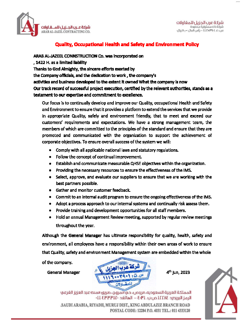 Arab Al-Jazil Company was established in 1422 AH as a Saudi limited liability contracting company.